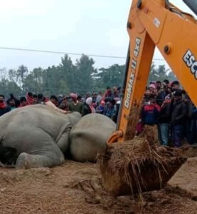 असम: वेस्ट कार्बी आंगलोंग के खेरोनी थाना अंतर्गत बोगरीघाट गॉव में जंगली हाथी का झुण्ड रात को करीब सौ से ज्यादा पुरे गॉव में रोजना की तरह चारो तरफ फ़ैल गया । गॉव में शादी के माहौल के साथ भोजपुरी रीतिरिवाज का “पीड़िया’ नाम का पर्व के चलते सारे लोग जगे हुवे थे तभी करीब एक बजे रात को लालबाबू चौहान के धान के कटे खेत में दो हाथी बिजली के तार में लगने के कारण मृत्य और कई हाथी का पास में ही चिंघड़ने/ गरजने का खबर लगने के साथ ही सैकड़ो लोग पहुचे । बाद में कुछ जंगली हाथी वहां से लोगो के शोरगुल के बाद धीरे धीरे गन्ना के खेती में चली गयी। वनविभाग और बिजली विभाग के कर्मचारी को फोन से खबर दे कर गॉव वाले ने बुलाया । सुबह होते ही वनविभाग ने पुलिस और गॉव सुरक्षा वाहिनी के सहयोग से दोनों हाथी को वही जेसीबी से जमीन खोद कर दफना दिया।