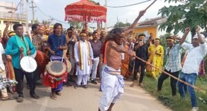 Kalahandi, YNN (Lingraj Mishra): Rupra Road, under Narla Block in Kalahandi district, witnessed a grand Nuakhai celebration organised by the Yadav Samaj at the Laxmi Puja Mandap. The event, hosted by the Rupra Road Gram Panchayat Yadav Samaj, featured a splendid display of Yadav culture through performances like Badi Khel, Ghumura, and Gana Baja, along with various cultural programmes. The air resonated with the spirited chants of “Jai Yadav, Jai Madhav.” A vibrant procession brought the sacred idol of Goddess Samlei from Bargaan and a framed picture of Radha-Krishna from the Jagannath Temple to the stage for installation. The community gathered to partake in the traditional Nuakhai served on kure leaves, followed by the customary Juhar Bhet greetings.
