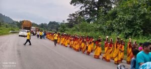 Kalahandi, Yadu News Nation (Nilesh Kumar Nag): The third year of Durga Puja organized by Pokharibandh Maa Hiranila Stone Crossor, Lanjigarh Block, Kalahandi District, has begun with a grand Kalash Yatra. Under the leadership of Pokharibandh Durga Puja Committee President Ramesh Chandra Sahu, all the members of the committee, more than one thousand women and men from Pakharibandh Gram Panchayat area participated in it.